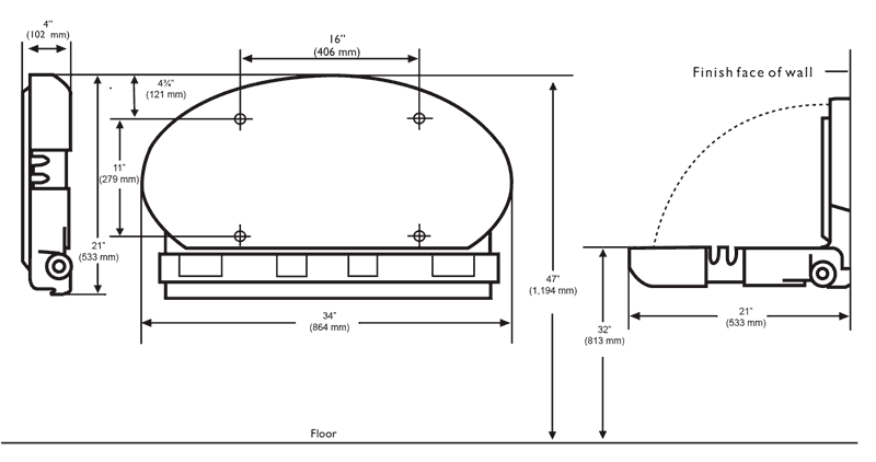 - Complies with ASTM static load performance requirements and ADA regulations when properly installed