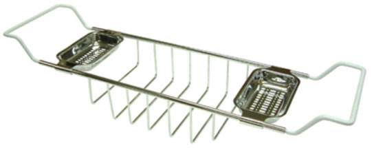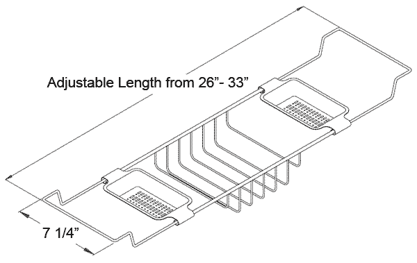 Enjoy a relaxing and rejuvenating soak in your tub with all your tub necessities right at your fingertips. This shelf can hold soap, shampoo, body wash, a razor, loofah, scrub brush, wash cloth or even a rubber ducky. The open rack design allows water to drain dry. This bathtub shelf can expand from 26" up to 33" to fit various tub widths.
