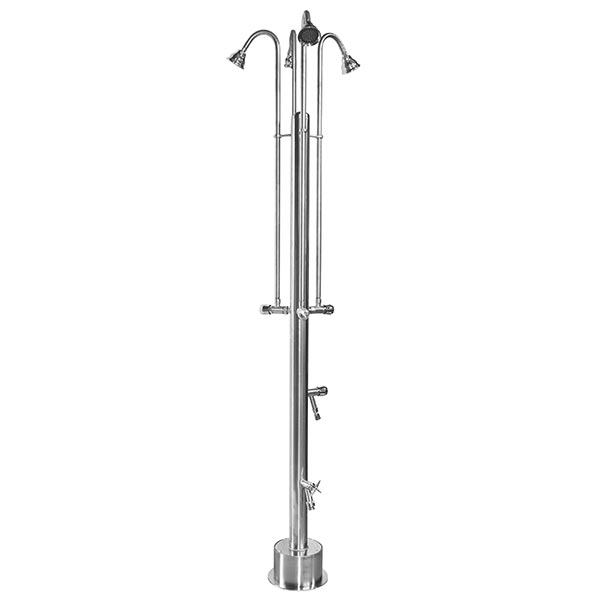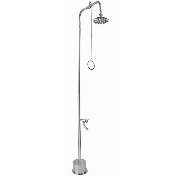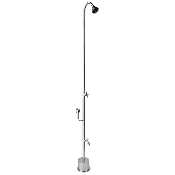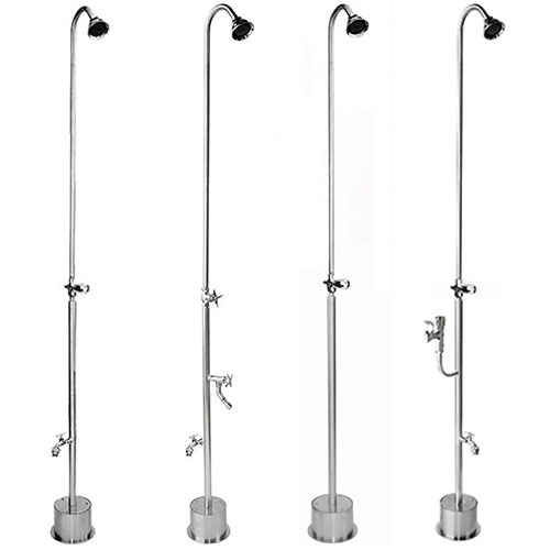 A.Our showers have been installed outdoors in facilities such as fitness centers, scuba diving schools, lakes, resorts, hotels, yachts, cruse ships, campgrounds, public pool shower stalls, indoor pools, YMCA's and residential backyards. One of the newest fads for homes is an enclosed outside shower. These are not only used for rinsing off salt or chlorine water, but also for outdoor bathing.