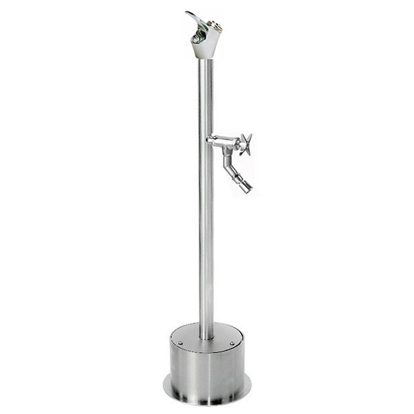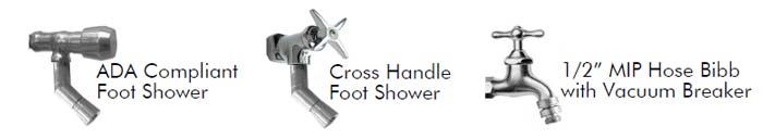 A.The ADA compliant foot-shower models come with push-button valves at both the main valve and at the foot shower valve. The hose bibbs and drinking fountains are push valve or lever handle (ADA compliant).