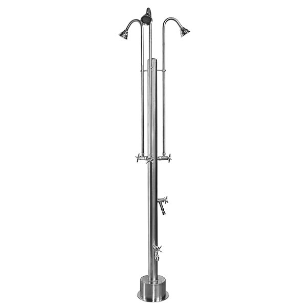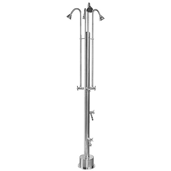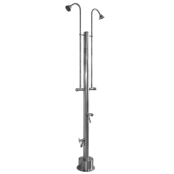 A. The material you choose is really a personal choice as there are benefits to each. These pool showers are made of quality, commercial grade chrome-plated brass and stainless steel - meaning that some components (most notably valves and some shower heads) will be made of brass, while the body and other pieces are made of stainless steel. In general, brass is less expensive and better suited to certain applications (i.e., valves), while stainless steel (although more expensive) is more resistant to corrosion and will last much longer - it pays for itself in the long run. We recommend choosing whatever style outdoor shower or outdoor shower head you like and then considering your climate. The manufacturer recommends stainless steel if your home or business is near the ocean, as saltwater will eventually corrode even plated brass that is exposed to the elements. However, since these units do have standard 1/2" NPT connections, many brass elements like showerheads can easily be replaced with whatever you like. Additionally, it is recommended you winterize the unit when temperatures are consistently below freezing (32°F) by removing valves and shower heads to provide the longest-lasting service and avoid damage to these components.