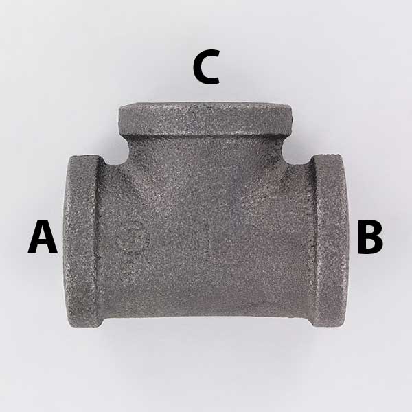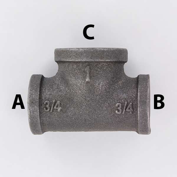 A. Reducing Tees are sized by determining the run (straight through portion) of the tee first and then the side outlet. The largest size of the run is always named first, the smaller size of the run second, and then the side outlet size last. Example: 3/4" x 1/2" x 1/2". When only two sizes are provided for the Tee description, the run size is listed first and then the side outlet. This means the run has the same size on both ends. Example: 3/4" x 1/2".  When the run part of a tee is smaller sized than the side outlet part of the Tee it is often called a Bull Head Tee. Example: 1/2" x 3/4" or 3/4" x 1".  This way of determining Tee sizes is the same for all Tees in plumbing no matter the type of material (PVC, copper, ABS, cast-iron, etc.) being used. measurements