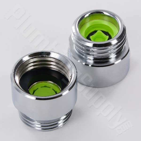 A. The standard washing machine hose connectors are 3/4" female hose threads, exactly like what is used outside for garden hose threads.. S.J. is simply 1/2" standard pipe thread - female threaded that fits onto most standard 1/2" male pipe threads. (SJ connectors might not work well on threaded PVC fittings, which may sometimes be too thick.) The only difference is that, unlike standard fittings that screw onto 1/2" male pipe threads, s.j. isn't tapered. There's no need to use pipe compound or Teflon™ (PTFE) tape to help make the seal on the threads, because the rubber/neoprene cone will make the seal instead against the inside rim of the threads that you are attaching the connector onto.