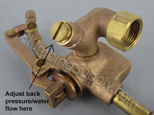 2) It may be the float needs to be adjusted. Do not bend the float rod. Adjust the plunger fulcrum arm. To lower the water level, place a screw driver under the middle of cross lever and above the support of the float rod and press firmly on the float rod next to the fulcrum.