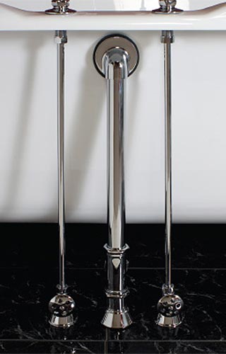 In many older homes, water piping would come up from the floor. Clawfoot tubs handle this option with grace and style by installing rigid supply lines. Available in straight sets for deck mounted faucets and offset styles for tub wall mounted faucets, these are the ideal finishing touch for your vintage bathroom.