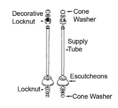 - Includes two supply risers, nuts/washers, and bell escutcheons