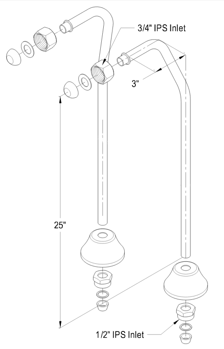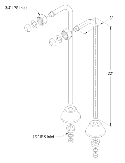 - 1/2" compression inlet, 3/4" slip joint to faucet inlet shanks