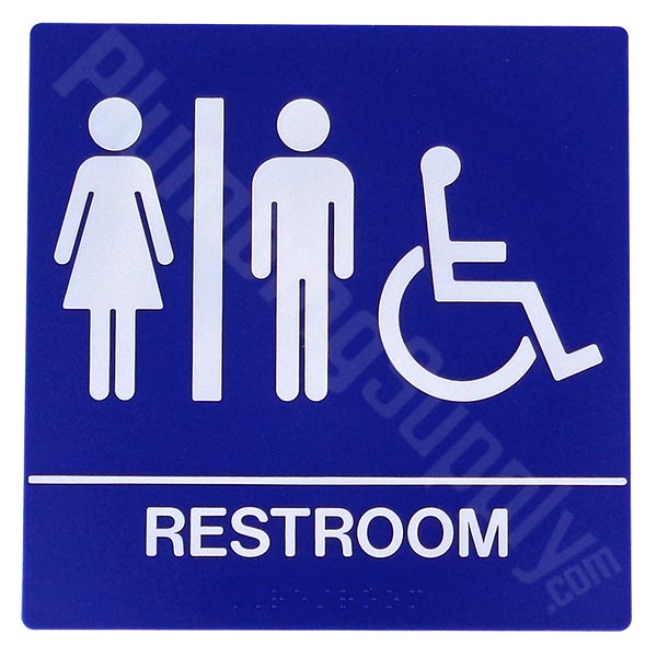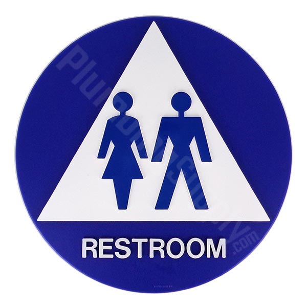Clear, simple signs leading to the restroom can make all the difference to a client or customer. These restroom signs are standard blue and white and include large labels for easy identification. Our signs have 5/8" high upper case characters and 5" tall male/female figures that are raised for easy visual or tactile reading. Their sturdy, 1/4" thick plastic construction is easy to clean and will last for years.