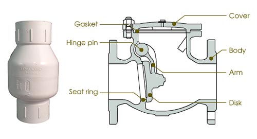 The water moving through your plumbing should only travel one way: from the supply lines and out through a fixture, or from a drain to the sewer main. To assure a one-way flow in the event of a "cross-connection" (wastewater flowing back into the supply), a check valve is necessary (backflow prevention). Some use a ball that's forced into a hole when flow is reversed, blocking the outlet. Swing checks use a flapper that's forced into position by water flowing the wrong direction. Others use diaphragms or spring-mounted discs. These types of check valves are called "non-operational", in that they do not require anyone to activate them: it's all physics, and all automatic. For an operational check valve, look for a stop-check: these still work automatically, but allow you to manually stop flow in either or both directions. Check valves can also be integrated with other features in something like a Reduced Pressure Zone Assembly (a backflow prevention device).