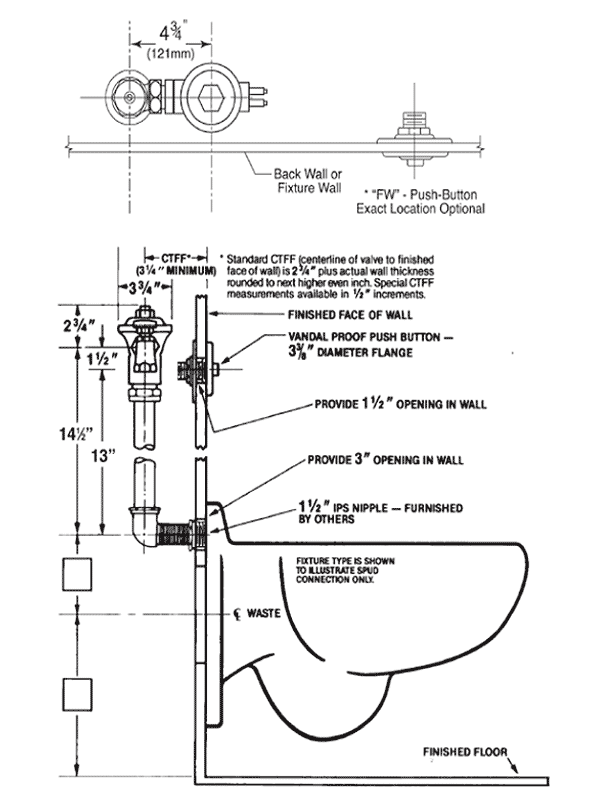Concealed Flush Valves For Security Fixtures With Backsplash