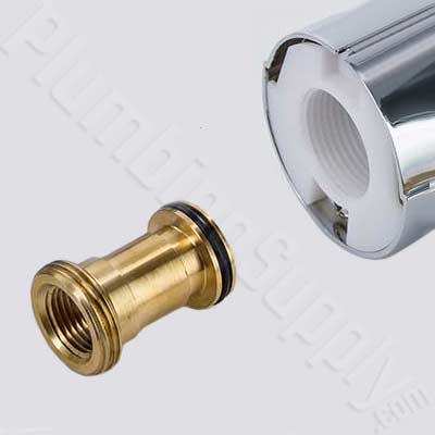 A. If your new Delta spout includes a new brass insert you do not need to remove your old brass insert unless the external threads are messed up. The Delta spout will thread directly onto your existing brass insert. You can then either discard the new brass insert or keep it in case you decide to use it at a later date. If you must remove your existing brass insert and it is soldered on to your pipe you will need to heat the brass insert with a torch and with a pair of pump pliers or channel locks grab the brass insert and slide it off the end of the copper pipe once the solder begins to melt and soften. Put the insert immediately into cold water to cool it off.