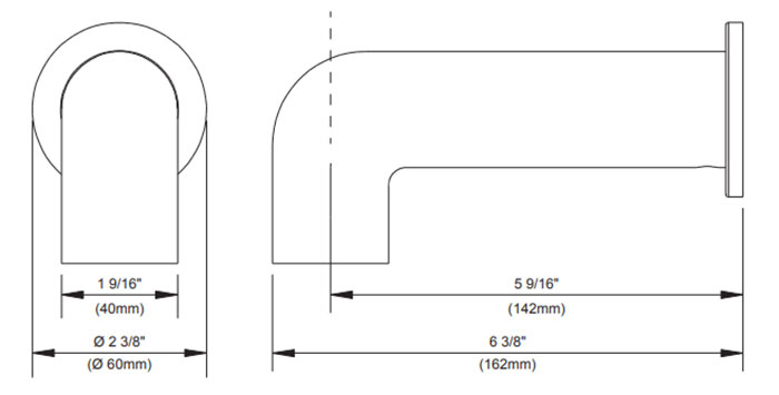 • Classic tub spout design complements almost any bathroom décor