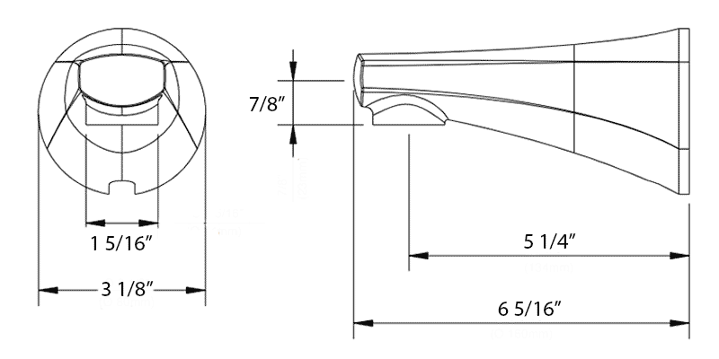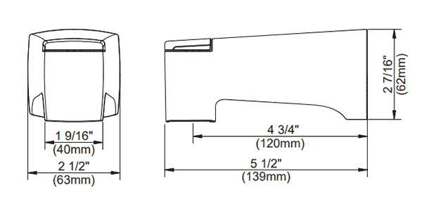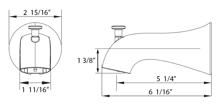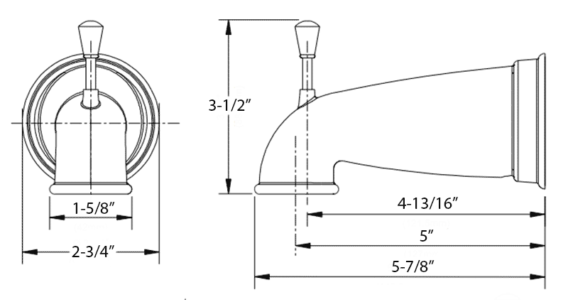 • View 5-1/2" diverter tub spout detailed dimensions