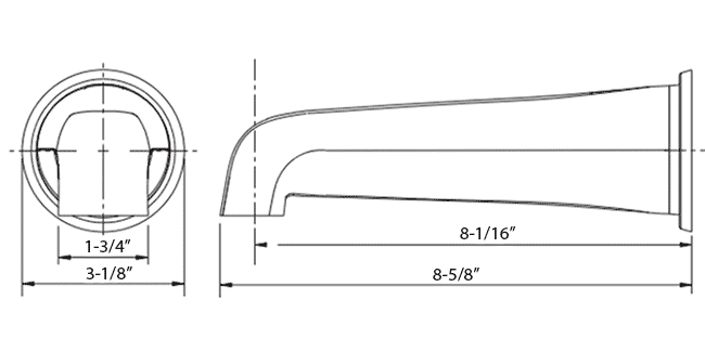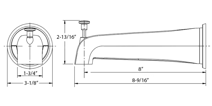 • View 8-9/16" diverter tub spout detailed dimensions