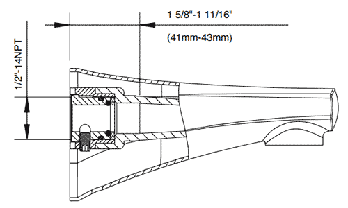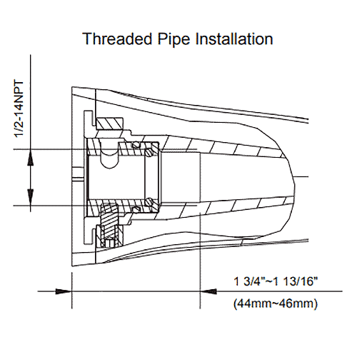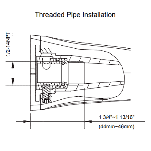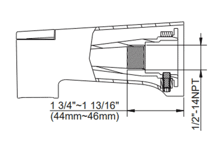• 1/2" NPT stub out length = 1-3/4" - 1-13/16"
