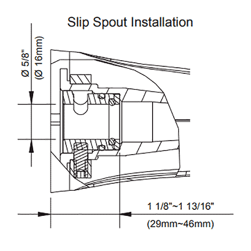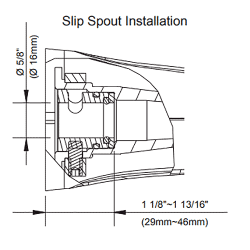 • Replacement spout for the Antioch, Bannockburn, Fairmont, Melrose, Plymouth, Prince, and Sheridan collections