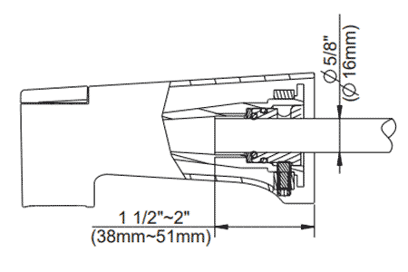 • 1/2" Nom. stub out length = 1-1/8" - 1-13/16"