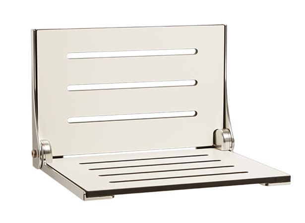 A. When properly installed, all Seachrome shower seats have been designed and manufactured to support loads exceeding the downward pull requirements for Federal specifications FHA, VA, HUD, hospital codes, and private construction. Bench style wall mounted shower seats are rated for 250 lbs. maximum. The actual "in use" load bearing capacity of any shower seat, however, will be limited by the strength of its mounting surface and installation hardware. Seachrome recommends that shower seats be installed using 2" minimum thickness "in wall" solid wood backing material with #10 x 2" stainless steel, phillips-head, sheet metal screws, or using a wall embedded, minimum 12 ga. (2.8mm) steel anchor plate with #10 x 24 stainless steel machine screws. Please contact the factory for further mounting recommendations. Under no circumstances should any shower seat be mounted to drywall, sheetrock, plaster, fiberglass, acrylic or other similar "hollow" wall surfaces without appropriate wood or steel backing material.