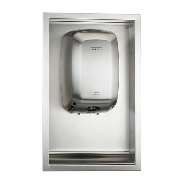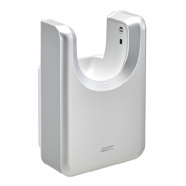 - Stylish U-shaped surface mounted dryer provides 100% hands-free operation - simply place hands between the air outlets in the "U" area and the infrared sensors activate the dryer