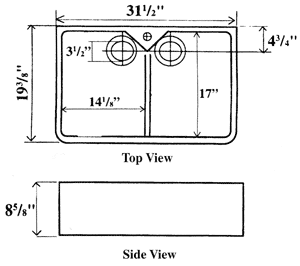 - 31-1/2" double bowl with 7-1/2" interior bowl depth