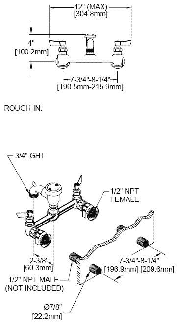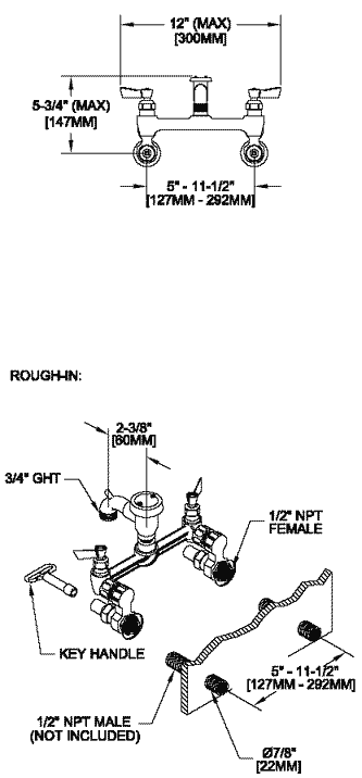 Service Sink Faucet w/ Key Stop Eccentrics (Short Spout)
