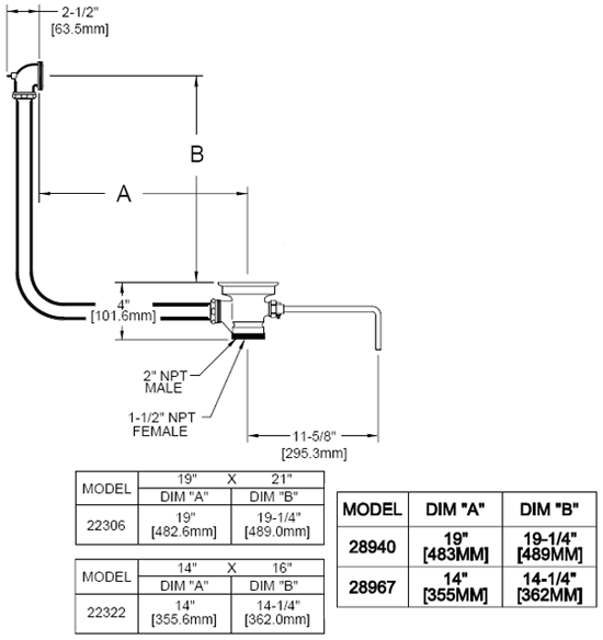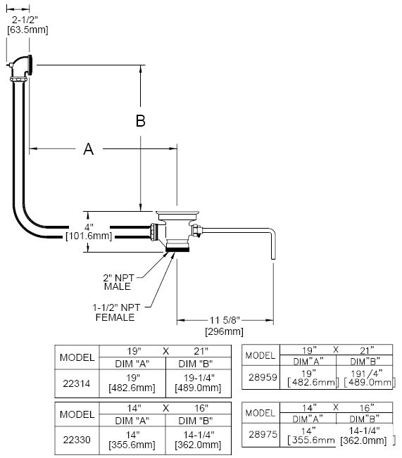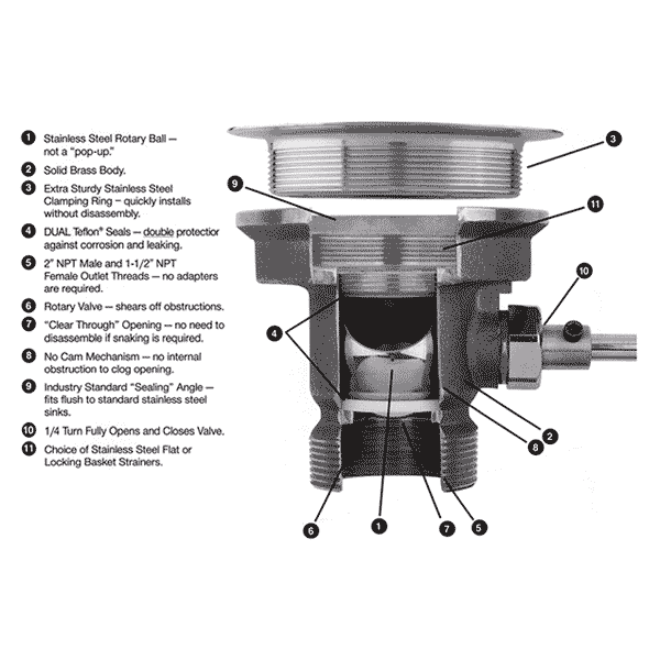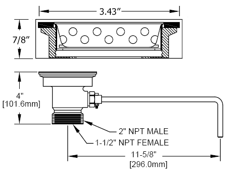 • 2" male / 1-1/2" female connection for commercial & restaurant stainless steel sinks