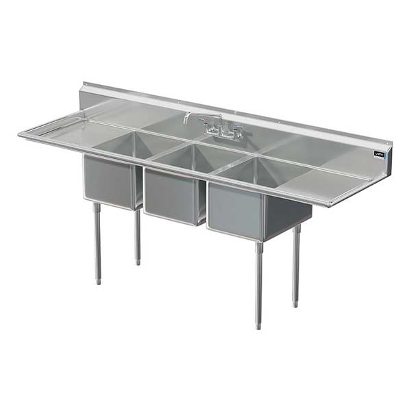 A. Because the sinks with coved corners have rounded "seams", they're much easier to clean than the squared-corner models. Also, the coved-corners sinks are NSF-approved, whereas the squared-corner sinks are not; your local building codes may require your sink to be NSF-approved, so be sure to check with your city or county building inspectors or Building Development Department to confirm what is required in your area before you select your sink.
