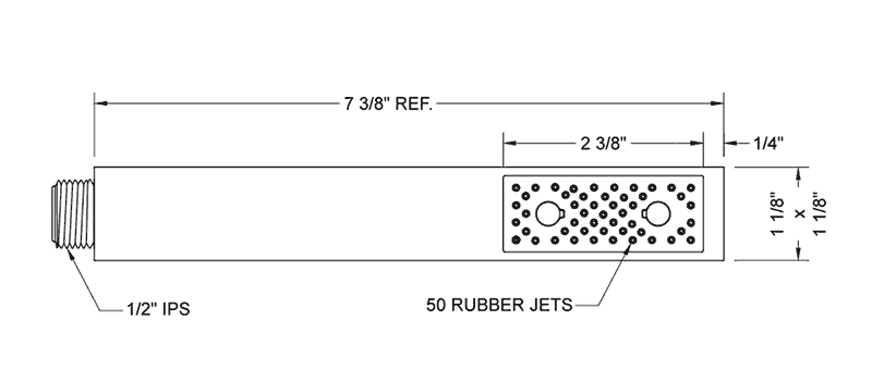 CEC Compliant - Unique wide trapezoid spray with contemporary square styling to match contemporary tub/shower fixtures