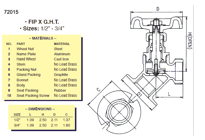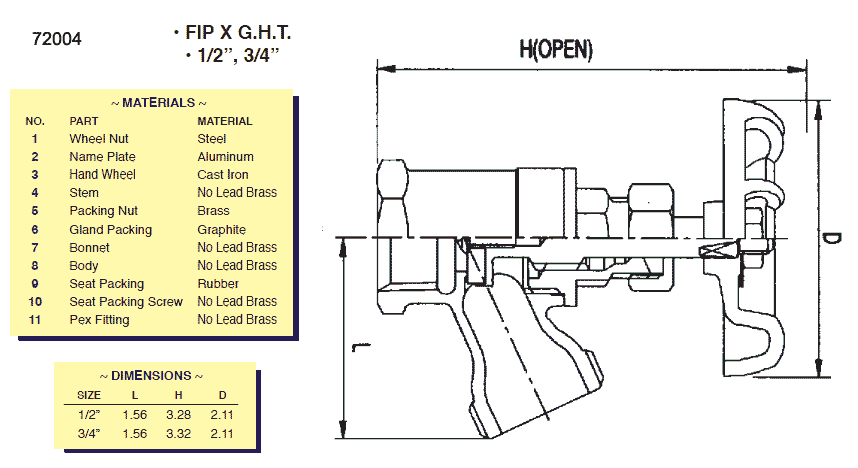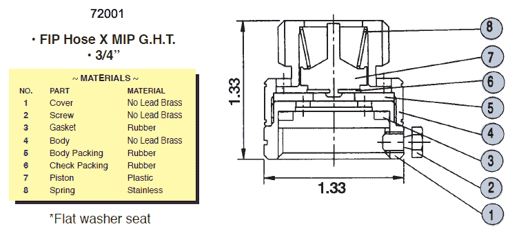 Heavy duty brass construction -- 2014 Federal Safe Drinking Water Act compliant -- Available with a built-in vacuum breaker