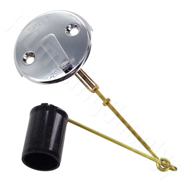 • Plunger Style: This style also uses either a trip lever or turn style mechanism to operate. An internal plunger is used to stop water flow. When the overflow plate is activated by tripping a lever or turning the plate it causes the plunger to raise or lower. Trip Lever and Turn Style assemblies normally do not have a visible stopper in the tub drain. The drains simply have a strainer of some sort covering the drain.