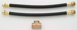 3/4" brass tee, two 18" flexible hoses (3/4" MIP x 3/4" FIP)