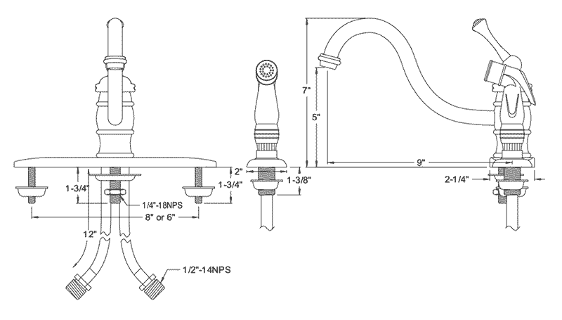 Duraseal washer-less valves provide smooth operation - Solid brass construction means these faucets are built to last - Anti-clog sprayer - Standard 1/2" connection to supply lines - Quiet running hose -