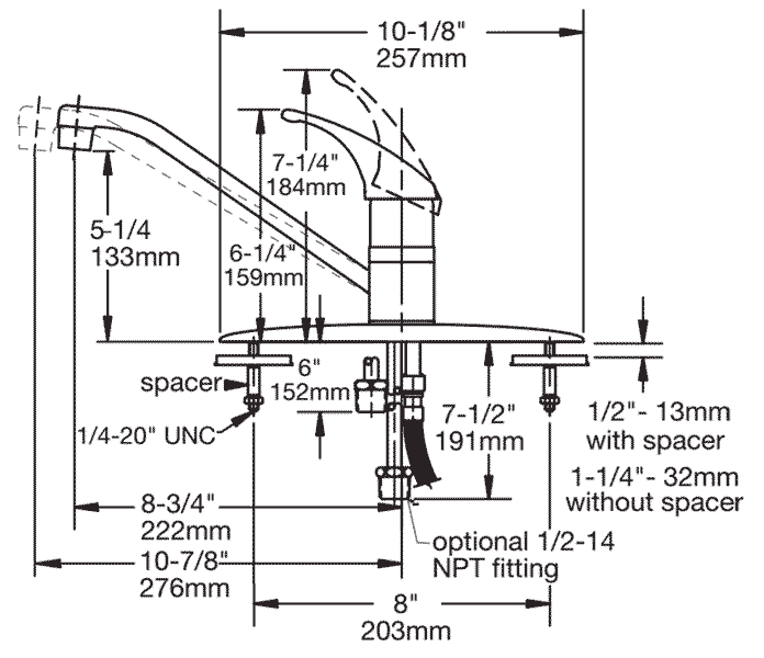 - 12 3/4" high swivel spout, 8 1/4" spout length, fits kitchen of all sizes