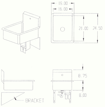 • Includes 21" x 16" x 8" bowl (wall hung), knee pedals, gooseneck spout and basket