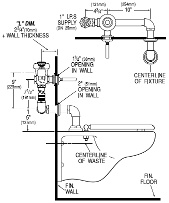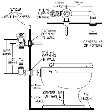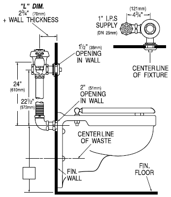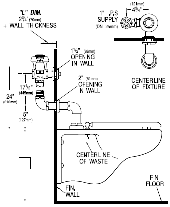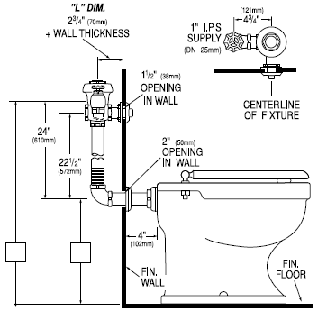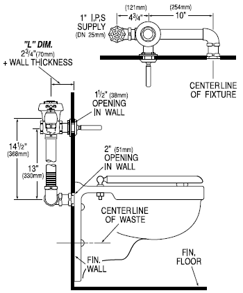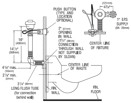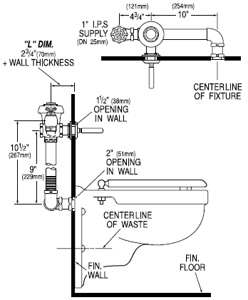 - Due to many wall thicknesses, toilet carrier not supplied with these flushometers