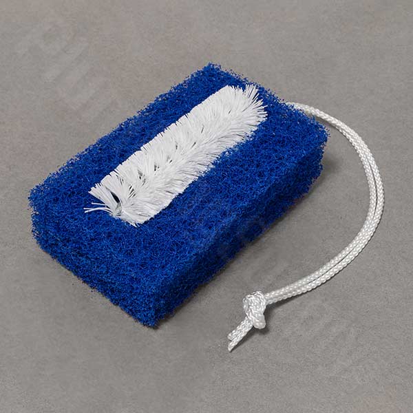 - Absorb dish soap in the sponge and let the brush do the tough work