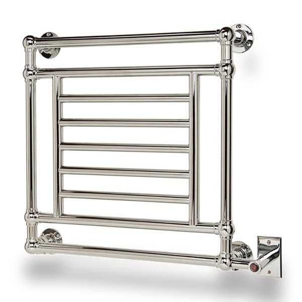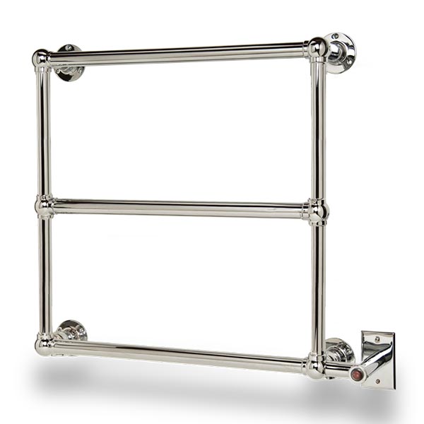 A. Both electric and hydronic towel warmers are designed for in-home use. Electric towel warmers typically have very low energy consumption rates - many consume the same power as a standard light bulb (60 Watts). These models contain one of two types of low wattage elements: some use a dry element, while others use an element to heat mineral oil within the unit. Electric towel warmers are available as either hardwired or plug-in. Hardwired units will need to be integrated into the building's electrical system, while plug-in models simply plug in like any other appliance. Both types of electric towel warmers may be operated with an on/off switch or with a timer. Some of the larger electric units can provide enough heat to warm a room, though electric units are typically used in conjunction with another heat source to heat a room. Hydronic towel warmers simply utilize your hot water plumbing to produce heat by running the hot water through the towel warmer. This can be done one of two ways; by connecting to your home's hot water heater (open system), or to a specific hydronic heating system (closed system). In most cases the hydronic towel warmer is going to be the most efficient method (energy savings-wise) but can also be the most difficult for installation unless the installation is part of a complete remodel or new construction. For more information about towel warmers, please see our towel warmer information page.