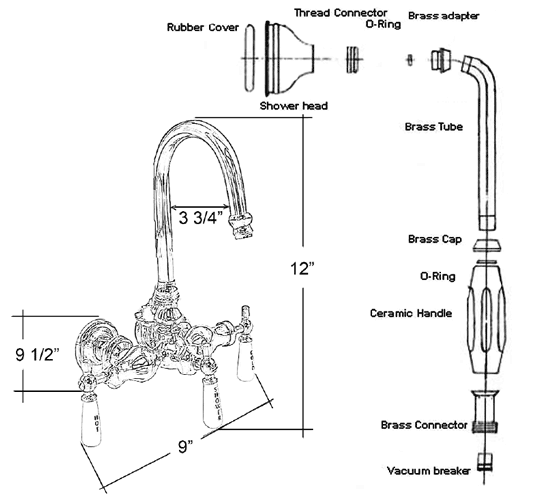 - Optional Victorian handshower with built-in check valve and 59" flexible hose offers you extra reach and makes bathing young children a breeze