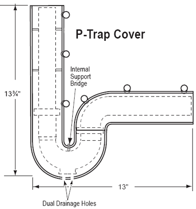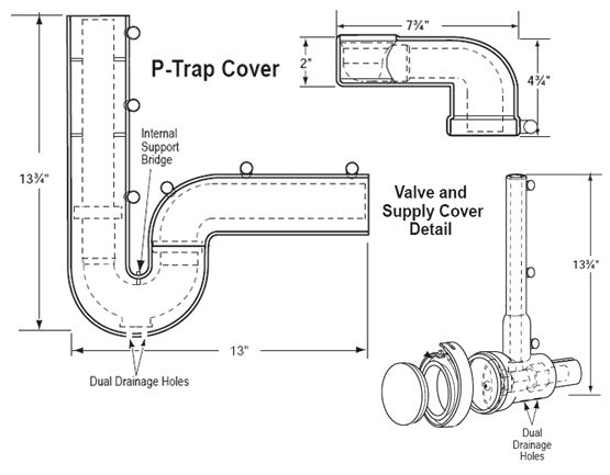 - Helps protect those who use a wheelchair from getting burned or cut from drains/supplies under sinks