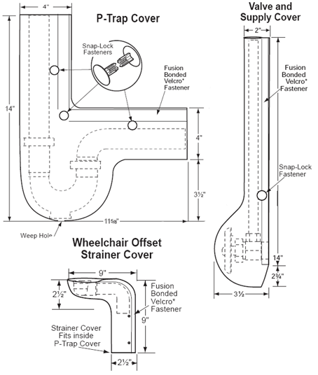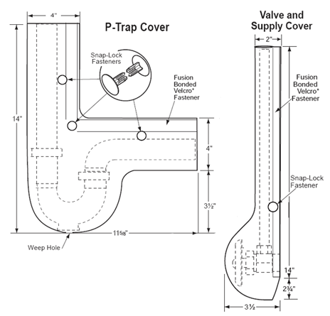 - Protects wheelchair bound from getting burned or cut from drains/supplies under sinks