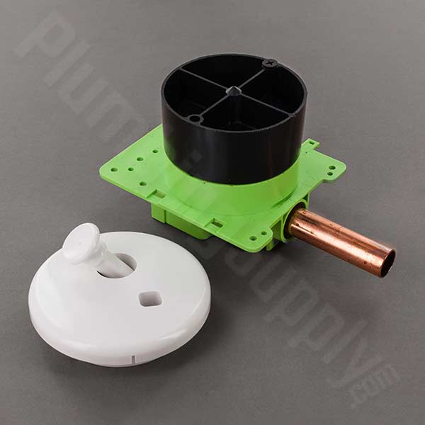 Ever cut a stub-out only to have it leak on new floors, creating another mess to clean up? This rough-in kit eliminates that while making the entire installation faster and easier. Instead of assembling an angle-stop, stub-out, mounting bracket, and valve, you simply cement or solder the water supply to the rough-in unit that has an integral brass valve, then screw the box to a stud. After the drywall is painted, the included debris cover is removed and the supply line is pulled through the decorative cover, which snaps over the rough in box. Fast, easy, and virtually foolproof. Should you ever need to turn the water off to the fixture, the discreet little knob easily pulls out to stop the flow. You can even paint or wallpaper the trim kit to blend in with the wall.