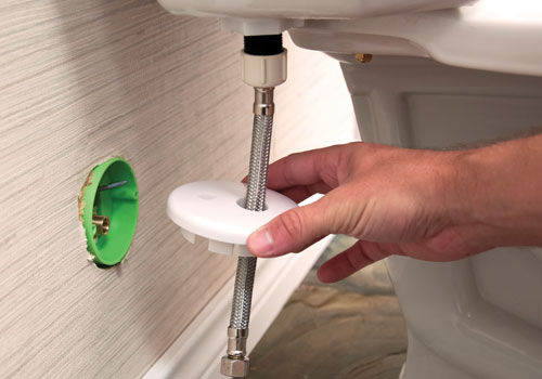 2. Feed a flexible connector through the escutcheon. It may be helpful to first attach the supply line to the fixture.