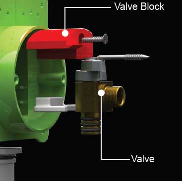4. The Pull Stop Box is shipped in the off position. Once the box is securely attached to the wall and the supply line is properly attached, no further work is necessary during the rough-in phase. The included protective cover will protect the valve during the construction process.