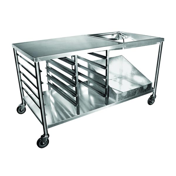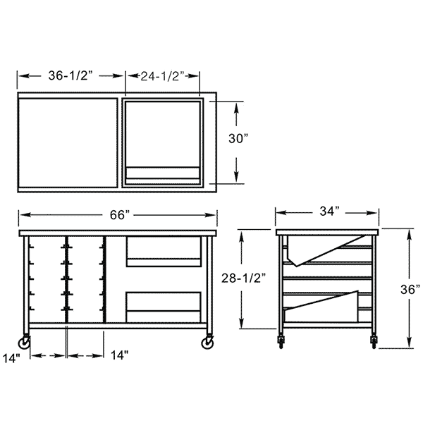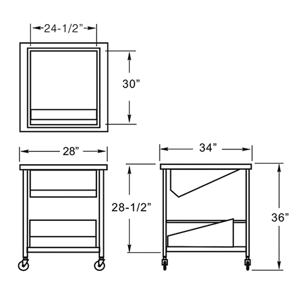 A. No, pans or bins are not included with the racks. The pictures are representational only and meant to provide you with an idea of what your new rack will look like. Each rack will hold a common size pan or bin for that type of application, and some are designed to hold multiple sizes or oddly shaped pans (e.g., oval trays, round pans). Please refer to the specifications for each rack regarding what size pans or bins they accommodate before purchasing.