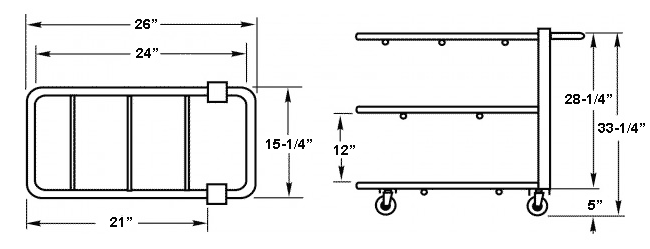 - Easy access to everything on the cart with roomy 13" clearance between shelves