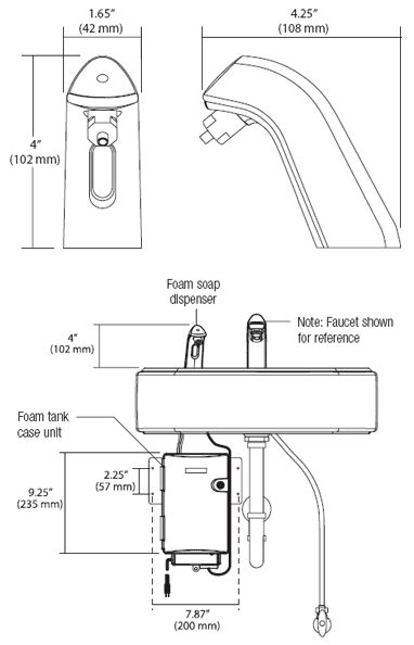 • Automatic foaming soap dispensing - simply place hands underneath unit to activate