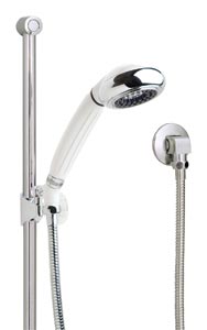 This Safetymix® handspray is the perfect solution for smaller showers! With an adjustable slide bar, you can move the hand shower as needed to accommodate different family members, yet the shower is easily removable for use by those who may not be able to stand long.
