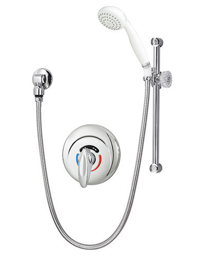 Enjoy a worry-free shower with this Safetymix® unit. The open flow hand shower with flexible 5' hose makes showering easier for elderly or disabled persons who may not be able to stand for long, while the pressure balancing mixing valve reduces the risk of accidental scalding.