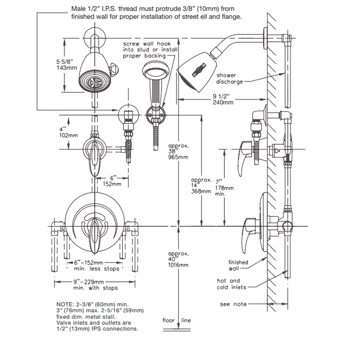 Used in all of the shower systems featured on this page, this is a triple port pressure balancing mixing valve that mixes your hot and cold water together to get the right temperature and help keep hot water temperatures from becoming too hot. The single lever handle features a fully adjustable stop screw beneath the cover that prohibits the valve handle from being turned to excessively hot temperatures and helps prevent scalding.