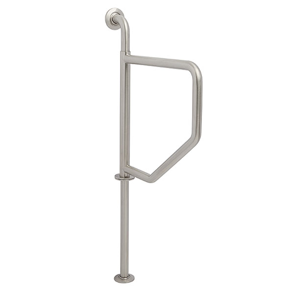 - This wall-to-floor mounted swing bar is engineered to move 90 degrees out and back for solid support in the shower
